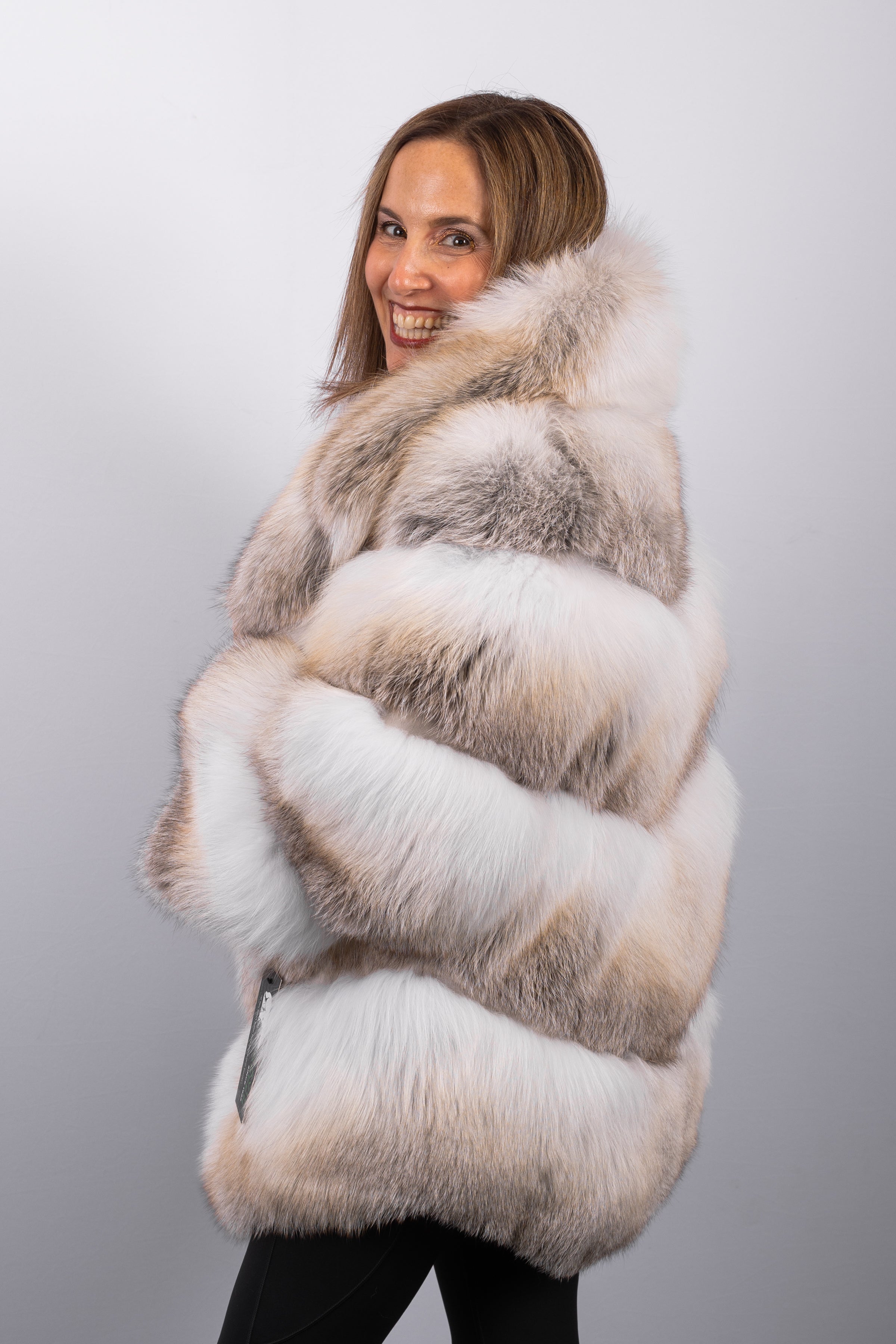 Elegant and sophisticated, this natural Shadow Fawn fox jacket showcases the luxurious beauty of the fur in a timeless design. Crafted from plush, silky Shadow Fawn fox, it features a classic notch collar for a polished, refined silhouette. Finished with seamless keska closures, the jacket offers effortless elegance and natural warmth—perfect for elevating both day and evening ensembles.