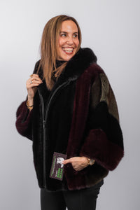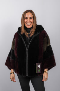 Black/Merlot/Olive Mink Jacket