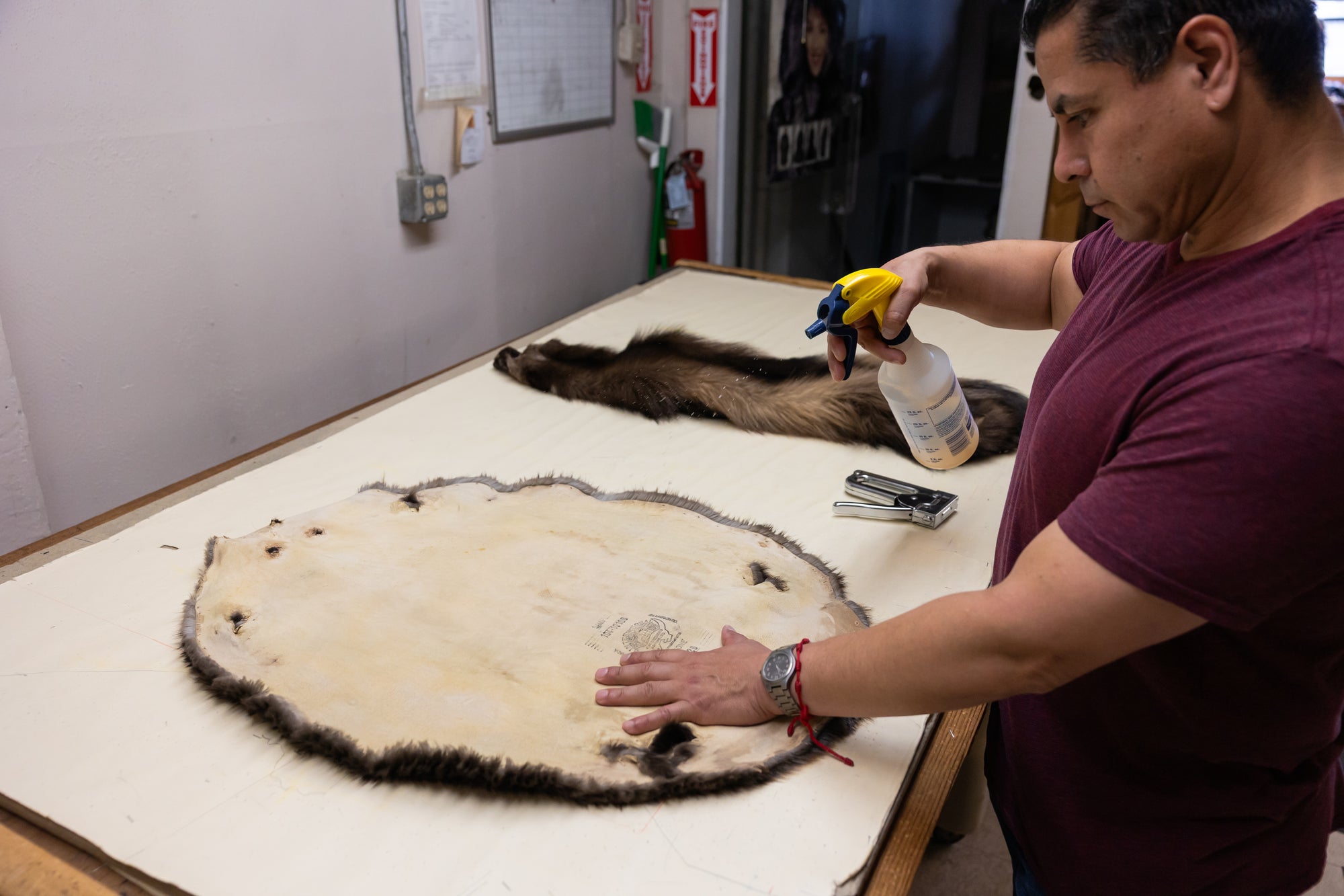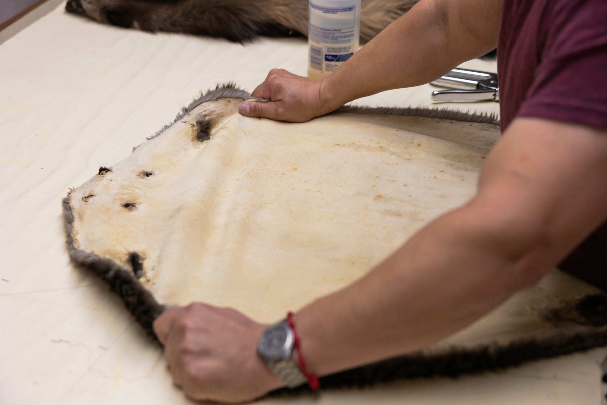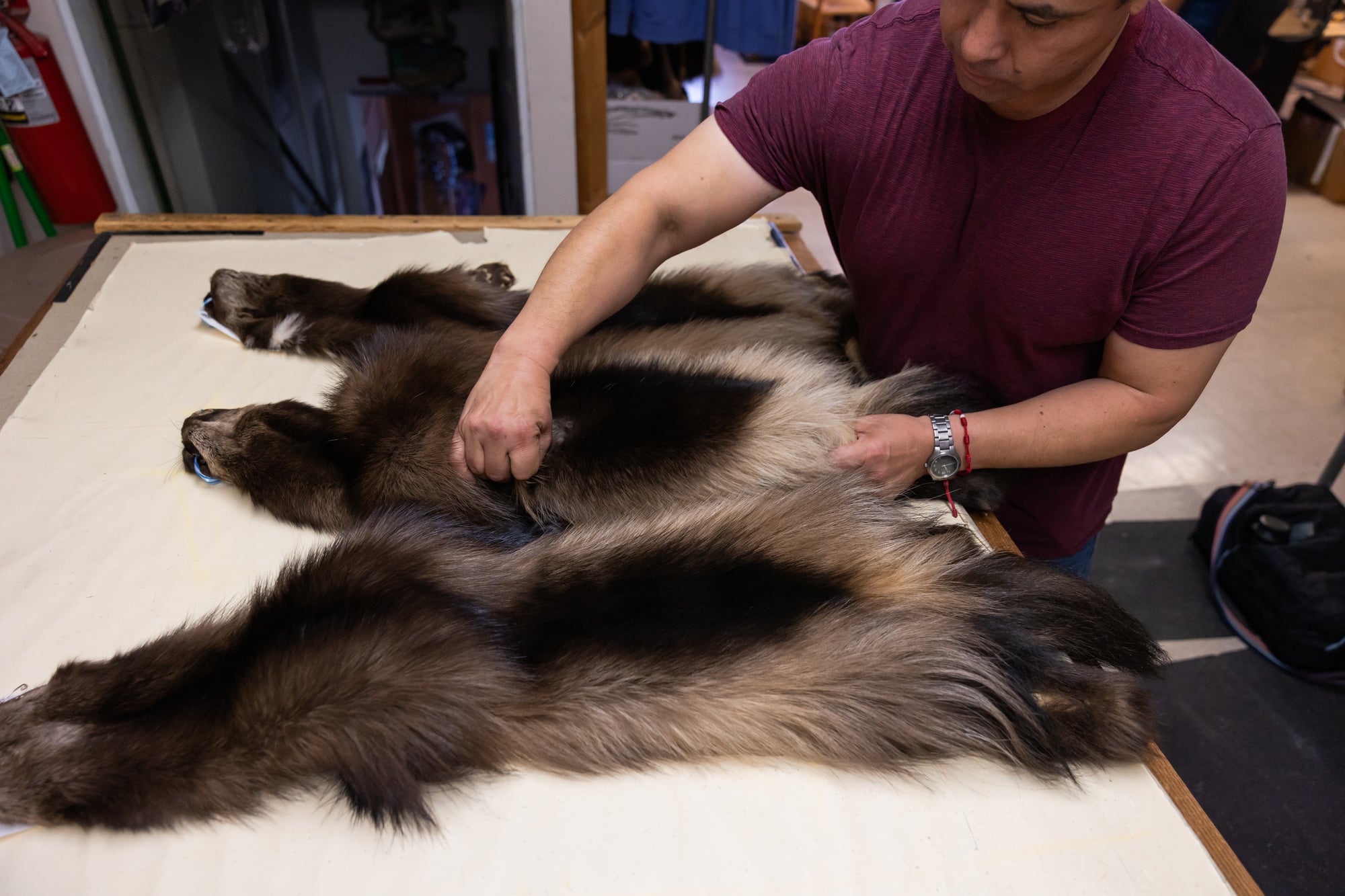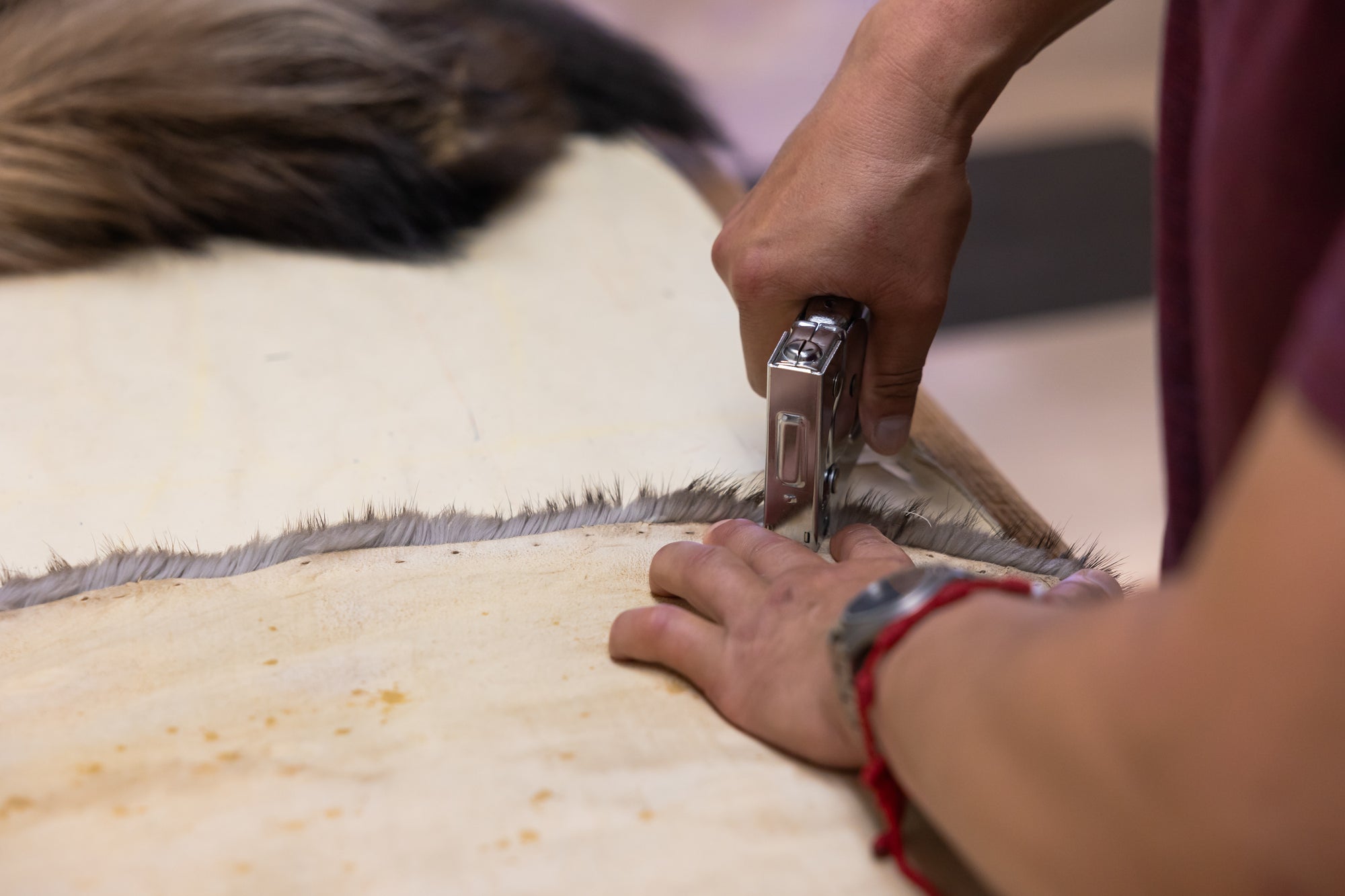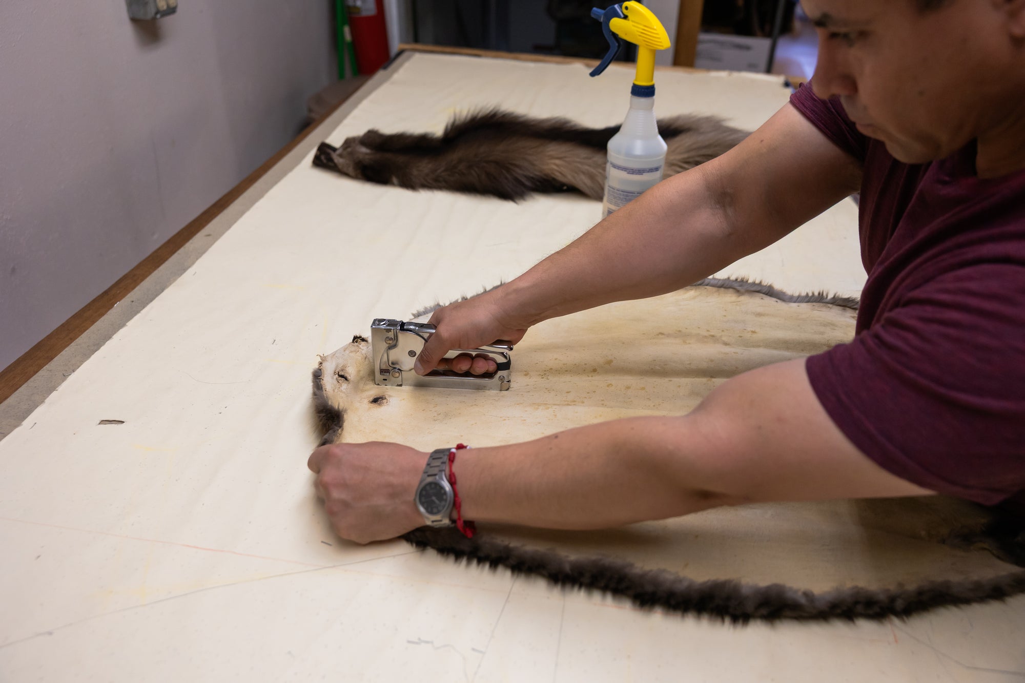 Once matched, the skins are carefully stretched to achieve proper shape, balance, and stability. This preparation helps maintain durability while preserving the natural characteristics of the fur.