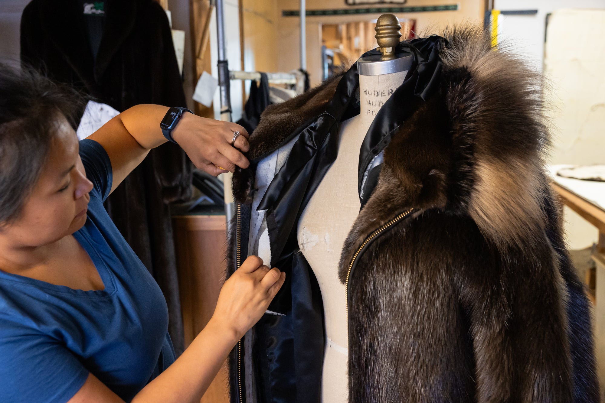 The cut skins are sewn together using traditional furrier techniques. This stage forms the structure of the garment while ensuring proper fur direction and a smooth, consistent finish.