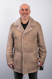 Rugged yet refined, this men’s stone shearling lamb jacket combines natural warmth with classic styling. Crafted from soft shearling lamb in a versatile stone hue, it features a notch collar and button closure for a polished, structured look. Perfect for layering over casual or tailored outfits, this jacket blends timeless design with functional comfort.